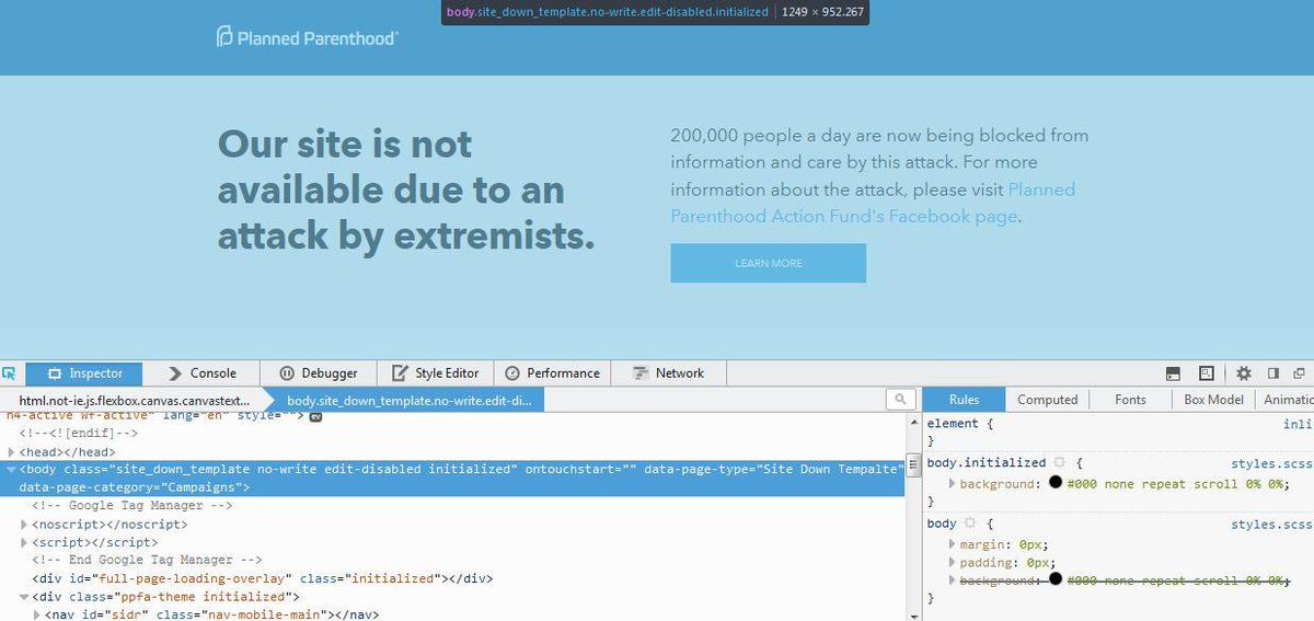 And this is the current Planned Parenthood ‘site is down because of extremists.’ See if you notice something similar.