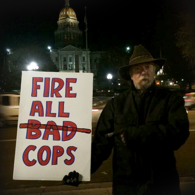 Occupy Denver and leftist radical Martin Wirth is a cop killer, and a hero to the progressive left in this country. Here’s a photo of progressive radical Martin Wirth holding a ‘fire all cops’ sign in November of 2014.