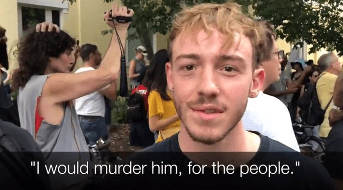 I decided to ask the protesters what they would do were they to meet president Trump. Specifically, I asked “If Donald Trump showed up here, what would you say or do?” The answers I received stunned me. In my short time at the rally, approximately one hour, half a dozen protesters looked into my camera and threatened to physically harm or “murder the president.”