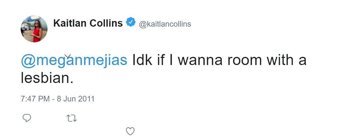 CNN hack Kaitlan Collins is a homophobe. That shouldn’t surprise anyone as CNN employs plenty of racists, mysongists and of course gave a platform to creepy porn lawyer. Turns out CNN Kaitlan Collins called male homosexuals “fags” and tweeted that she was never want to “room with a lesbian.” This is CNN: