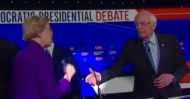 Elizabeth Warren tried to place nice nice during the clown show debate, refusing to attack Bernie Sanders for his so called statement about claiming a woman could never be president. She had CNN do most of her dirty work for her. CNN seemed to attack Comrade Sanders and run interference for Warren all debate long. Even Van Jones shived Bernie and praised Warren. Here’s Warren and Sanders post debate, with Warren refusing to shake Bernie’s hand. He extends his hand, and she pulls back. It almost seems like Warren tried to lecture Comrade Sanders after the debate. Sanders appeared pissed off and walked away.