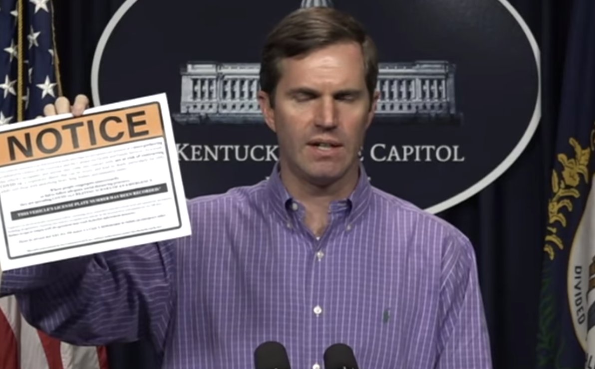 Democrat Gov. Andy Beshear “said local officials are being directed to record license plate numbers of participants to pass to local health departments,” Kentucky.com reported Friday evening. “Those who attend these gatherings can expect public health officials to show up at their doors with mandates that they self-quarantine for 14 days, the governor said.”