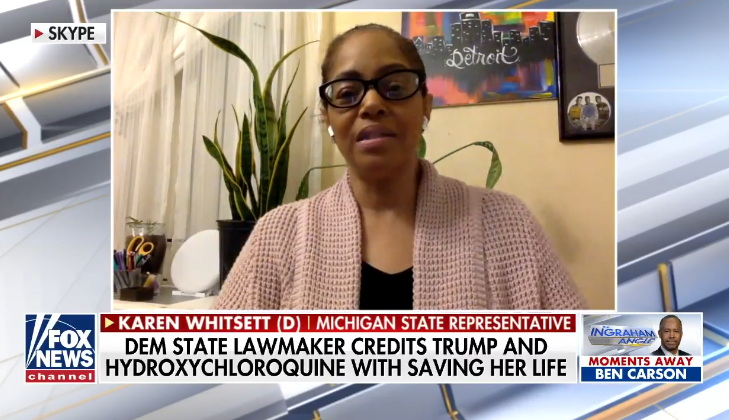 Whitsett rose to media prominence when she was treated with hydroxycloroquine and said if it weren’t for Trump touting the drug as a remedy for COVID-19, she may not have survived.