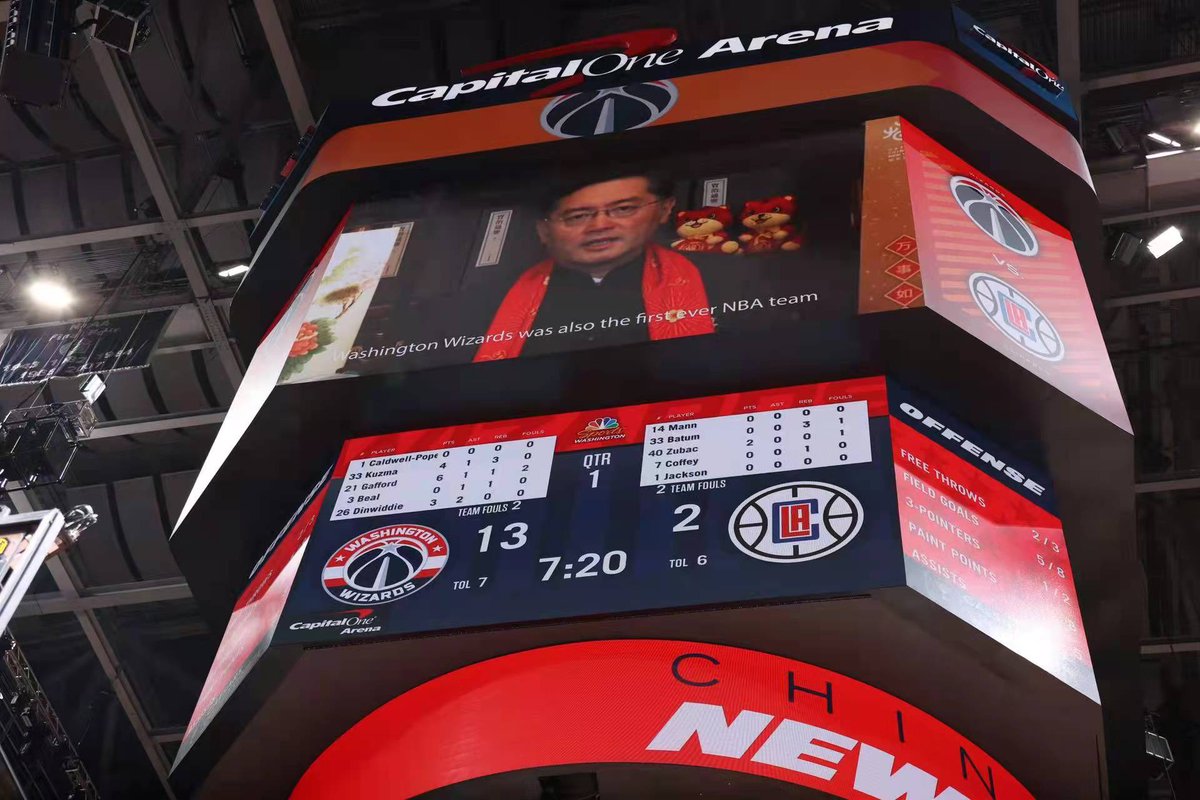 The NBA really is owned by the CCP now. In Washington D.C., prior to the national anthem in a game between the Washington Wizards and Los Angeles Clippers, the scoreboard aired a video of China’s ambassador to the US Qin Gang for some reason. During the American national anthem, the Wizards used Chinese traditional instrument, and other activities “honoring Chinese culture.”