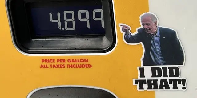 His effort is part of a growing nationwide trend as gas prices continue to soar. The stickers show the president pointing at the prices with the words “I did that!” in big, bold print.