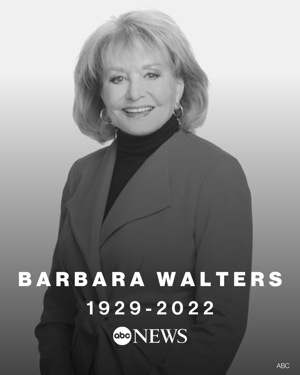 BREAKING: Barbara Walters, who shattered the glass ceiling and became a dominant force in an industry once dominated by men, has died. She was 93. https://t.co/tydwREgTb2 pic.twitter.com/b4jOEHVYFE