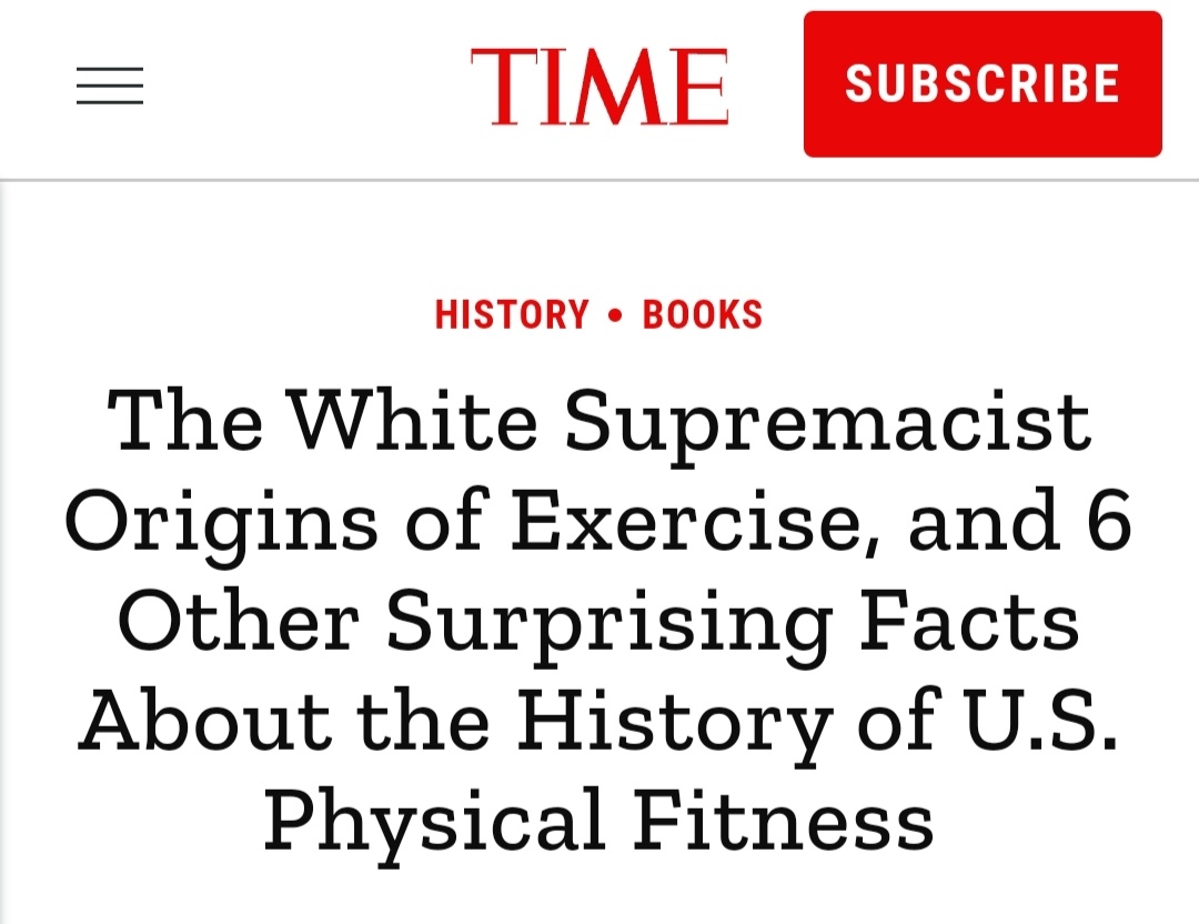 What will they think of next? Did you know that exercising is root deep within White Supremacy? That’s what left wing Time Magazine says anyway.