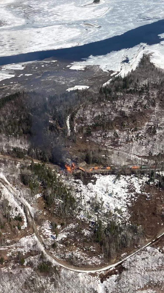 🚨 #BREAKING: Train carrying toxic materials has suffered a catastrophic derailment and is on fire near Rockwood, Maine