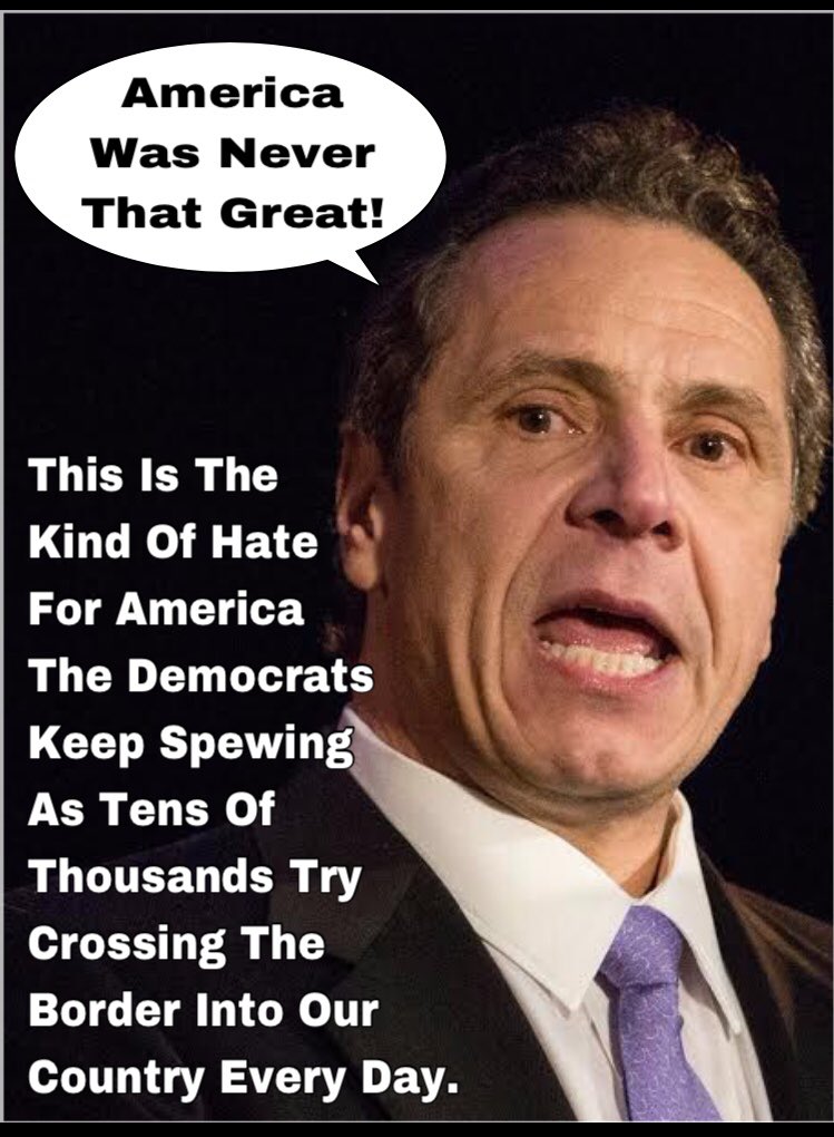 Considering Andrew Cuomo admitted to hating America by proclaiming at a bill signing that America was never great, I find
