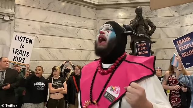 So now the communist left has there own “Qanon Shaman”.. This Trans-Shaman showed up at the Kentucky Capitol building during
